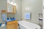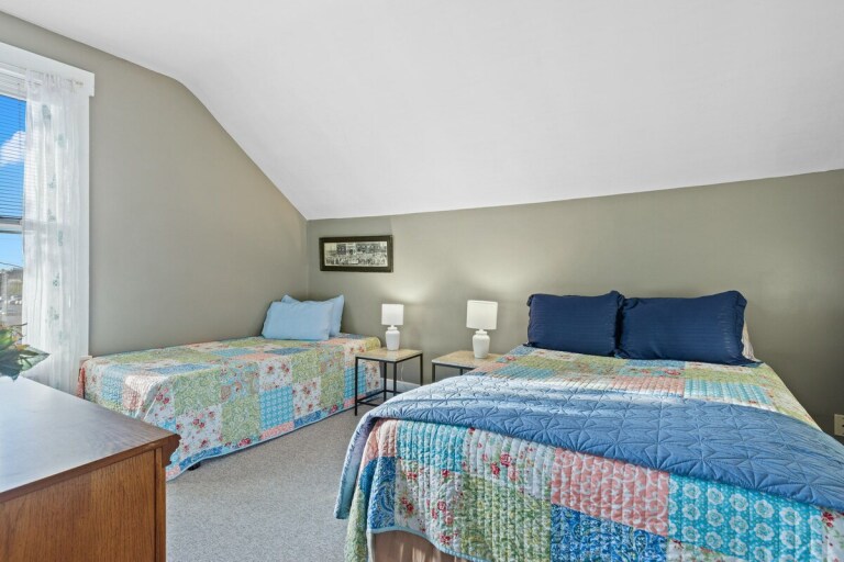 Sleeping Arrangements (Sleeps 10): Three bedrooms total. One bedroom on the main level (sleeps 4) and two bedrooms upstairs (sleeps 6).