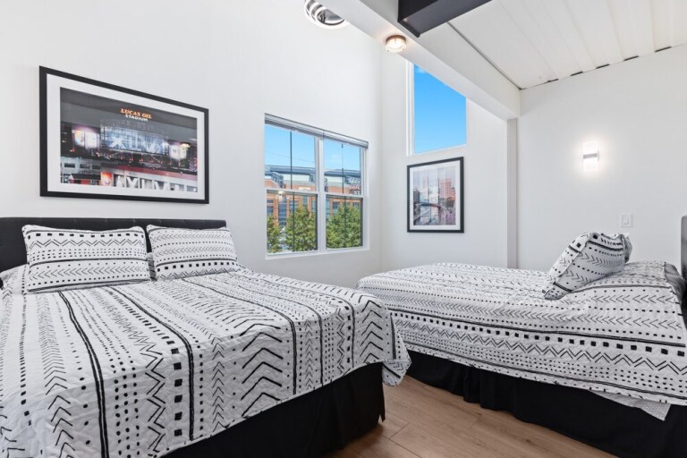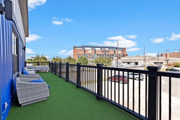 New 2024 Custom Built Home. Overlooking Lucas Oil Stadium and the Indy skyline. All new 2 bedrooms, 2.5 baths, 2 kitchens, large balcony, wrap around deck. This is the flagship property of INDY STADIUM VILLAS. Home sleeps up to 8 travelers. Walking distance to Convention Center, Lucas Oil, Monument Circle, and all downtown restaurants. Property is located one block off of I65 and I70. A special place in the shadows of Lucas Oil Stadium.